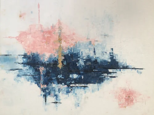 I've switched from acrylics to mostly painting with oils, and am enjoying a style that is more object-oriented. I believe the greatest life-balance comes from feeling free, and that is what painting is all about for me. This series evokes that place where we move from one phase to the next, but aren't yet sure where we're landing. There are options when limits and boundaries aren't defined. And so we float.